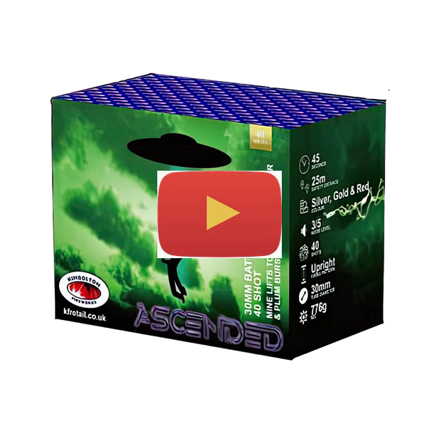 A powerful and stunning 30mm barrage producing 2 tone golden tentacle bursts, silver and red strobe, silver willows and mine lifts all the way through, finished with a huge golden finale.