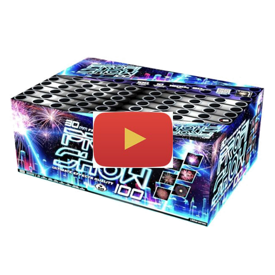 a huge fanned compound barrage from Klasek with a real pro display effect and max 30mm calibre powerful shots, wide fanned firing and showcasing a range of high quality effects, the 1st half of the fireworks sweeps across the sky in a z firing patter with the 2nd half firing in bursts.
