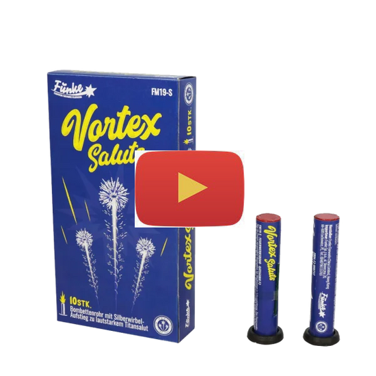A pack of 10 single shots tubes producing a spinning tail up to a loud burst.